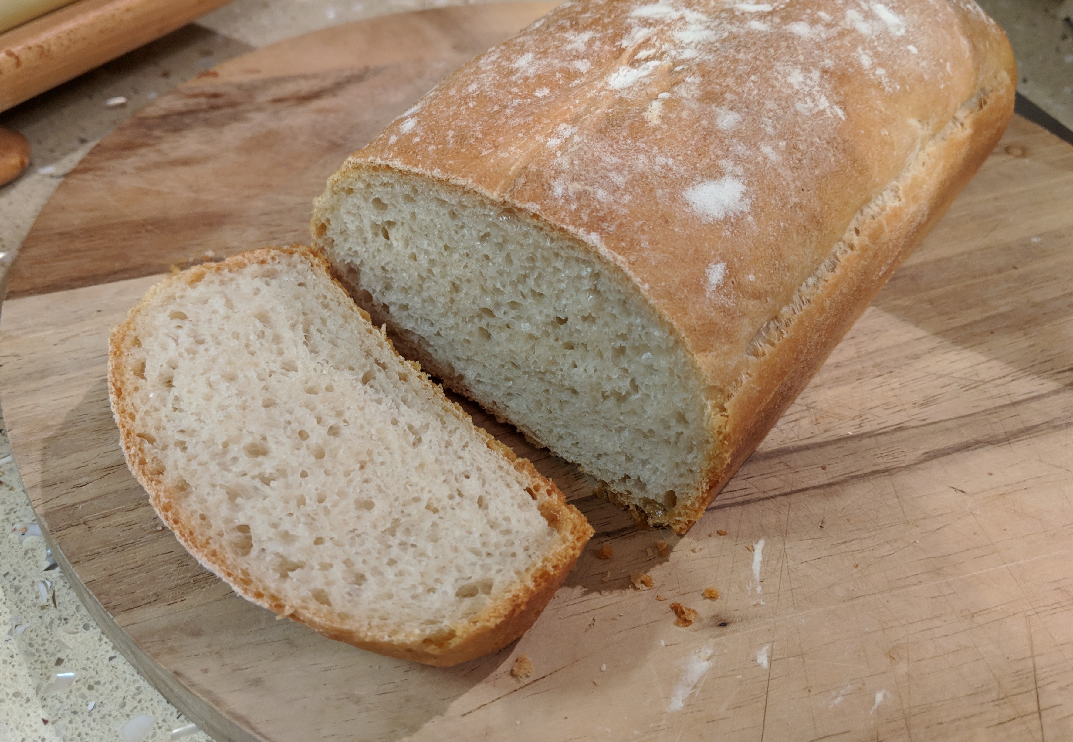 To test if the loaf is ready, tip it out of the tin and give it a good tap from beneath. It should sound hollow and the loaf should have a good crust.